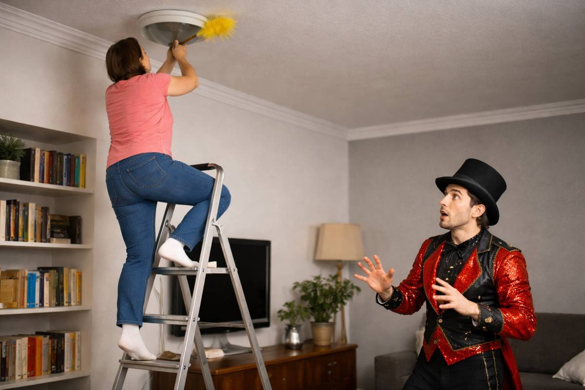Gefährliche Balanceakte beim Frühjahrsputz: KFV und Zirkus-Artisten zeigen Unfallgefahren auf