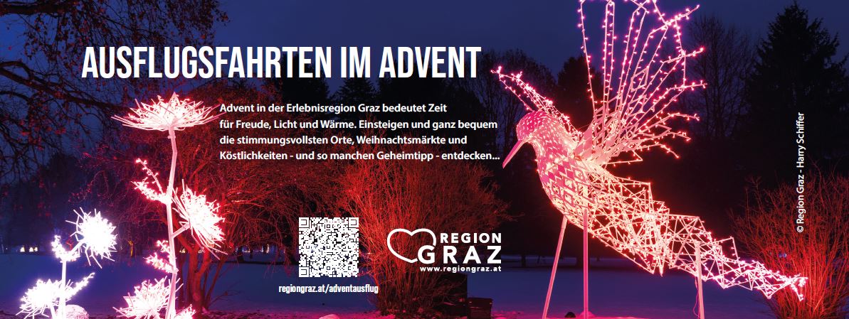 Manchmal braucht’s auch Glück Koralmbahn-Sonderfahrten ausgebucht! Binnen kürzester Zeit waren alle 5.500 Gratis-Plätze für den 12. Dezember weg STEIERMARK SCHAU verabschiedet sich mit positiver Bilanz Neue Koralmstrecke: Mehr Bahn und Bus für die Region Graz Alles anders in der Auto-Welt Nur die Reifen bleiben rund und wichtig Werbung mit Augenzwinkern Gemeinsam durch den Koralmtunnel - als „Ziemlich beste Freinde“ Erst umjubelt. Dann tiefer Fall. Alt-LH Waltraud Klasnic feiert 80er. Ihr 60er war ein „Trauertag“. Alt-Landeshauptmann Drexler verlässt die Politik „Drinking Glühwein under the Glockenspiel“ Steiermark Tourismus: mit neuer Flugverbindung ab Graz nun auch London im Fokus Koralmbahn: Punktlandung bei Investitionskosten Bedeutung des Sparens ungebrochen Aber: Alternativen bei Geldanlage gefragt Zu wenig Mut für eine gute Zukunft Steirisches Landesbudget 2026. Harsche Kritik der Opposition. „Trottel!“ – So wüst schimpft Österreich am Steuer Konflikte und Spannungen zwischen Autos, Rädern und Scootern nehmen zu Die Gestalterinnen in der Landwirtschaft LWK Steiermark zeichnet „Bäuerliche Unternehmerinnen 2025“ aus Österreichs modernstes Berufsausbildungszentrum Center of Excellence in Graz startet Vollbetrieb Kinderprodukte als Zuckerfallen 744 Müslis, Frühstücksflakes und Getreidebreie unter die Lupe genommen Der Schein trügt Steirische Jungwinzer:innen „lesen“ ihre Tradition neu Steiermärkische kürt Nachwuchstalente Steirer krönen ihr grün-goldenes Aushängeschild … bei der „Champions League“ des steirischen Kürbiskernöls in Bad Gleichenberg Ausbau Stadion Liebenau: Technisch natürlich machbar Wer aber ist als Zahler dabei? Ready for Take-off nach London & Co! Graz Airport: Neuer Winterflugplan – 6 Umsteigeflughäfen, beliebte Metropolen, abwechslungsreiche Badedestinationen, Sonderflüge Latte für die Planai liegt hoch. Peter Weichbold heißt der Neue ab Herbst 2026. Süd-Ost-Journal-Legende Hannes Krois verstorben Steiermark: Weniger Verkehrstote, aber viele auf zwei Rädern VCÖ sieht gesetzliche Helmpflicht kritisch: Bewusstseinsbildung sei besserer Weg „So funktioniert Österreich“ Vor 12 Jahren geschmäht, nun Unternehmer des Jahres: Bergbauernbub und Visionär Manfred Hohensinner „Menschen in unserer Region unterstützen“ Steiermärkische Sparkasse: Prämierungsfeier im Zeichen der Zukunft Fußball-Team fehlt Qualität für gute WM Aikido ist unsere Therapie Durch den Krieg gefährdete ukrainische Jugendliche in der Steiermark Magische Vollmondnächte an besonderen Orten mit Top-Kulinarik Eine Genussreise durch die Erlebnisregion Graz. Das war VOLLMUND 2025. Tragischer Unfall auf der Mur: Ein Arbeiter tot geborgen VS Leopoldinum Graz: Vorreiter in Österreich Erste öffentliche International Baccalaureate-Volksschule Tag der Offenen Tür am kommenden Freitag, 10. Oktober 2025 33 Kilometer-Tunnel ist das Herzstück Koralmbahn verändert Lebensrealität der Menschen Sparschiene ab 9,90 Euro. Jetzt heißt es schnell sein: noch gibt's Tickets für erste Fahrten. Leutschach hat größte Weintraube der Welt „9 Plätze – 9 Schätze“: Der Eorykogel geht für die Steiermark ins Rennen „Dein Pfand macht satt“ Uniklinikum und Saubermacher starten Spendenaktion für das Marienstüberl Graz Der lautlose Tod Einsatztraining mit echten Kampfstoffen Tierische Nachhilfe: Hund, Katz und Ziege „verstehen“ Zum Welttierschutztag am 4. Oktober 6.000 Haushalte und 100 Schafe „profitieren“ davon 20 Hektar große „Sonnenstrom-Insel“ der Energie Steiermark in Dobl-Zwaring Sibylle Reuter gewinnt SCHREIBEREI Literaturpreis – und erzählt vom Loslassen Mutter warf Neugeborenes auf Carport-Dach Klimaschutz im Rampenlicht TRIGOS Steiermark: Erfolg für „Circular WM Konzept“ von Saubermacher Letzte Chance zum Kutsch’n schaun STEIERMARK SCHAU im Schloss Eggenberg: Goldener Wagen nur noch bis Sonntag in Graz Steirischer Anlagenbauer und Umwelttechnikspezialist Binder+Co Trotz Kostendruck: Bekenntnis zum steirischen Standort Tiefer Brunnen der Vergangenheit Gedenkakt Land Steiermark: 80 Jahre Zweite Republik, 70 Jahre Neutralität – Meilensteine! AREA Süd ins internationale Schaufenster stellen Weststeiermark: Nächtlicher Bombenalarm durch Handy Warnende App in einer ukrainischen Gästegruppe in St. Josef als Auslöser „Für uns ist jeder ein Sieger, der dabei war“ Ein filmischer Rückblick des härtesten Triathlon Österreichs Bonjour, Paris – hier kommt die Steirerin Christa Franz! Haute Couture aus der grünen Mark auf Laufstegen der Pariser Fashionweek Anschluss gesichert! Verkehrsverbund Steiermark gewinnt VCÖ-Mobilitätspreis 2025 Geschäftsführer von 58 Firmen Wie geht das? AK deckt Millionen-Sozialbetrug mit Scheinfirmen auf 50.000 junge Steirer haben ihr Talent gecheckt Steirer in Höchstform: 4. Weltmeister-Titel in Folge Angelino Zeller bei Kletter-WM in Seoul. Chance auf Olympia-Gold gibt’s erst 2032. WERBUNG Lannacher Kulturherbst XXL ePaper lesen