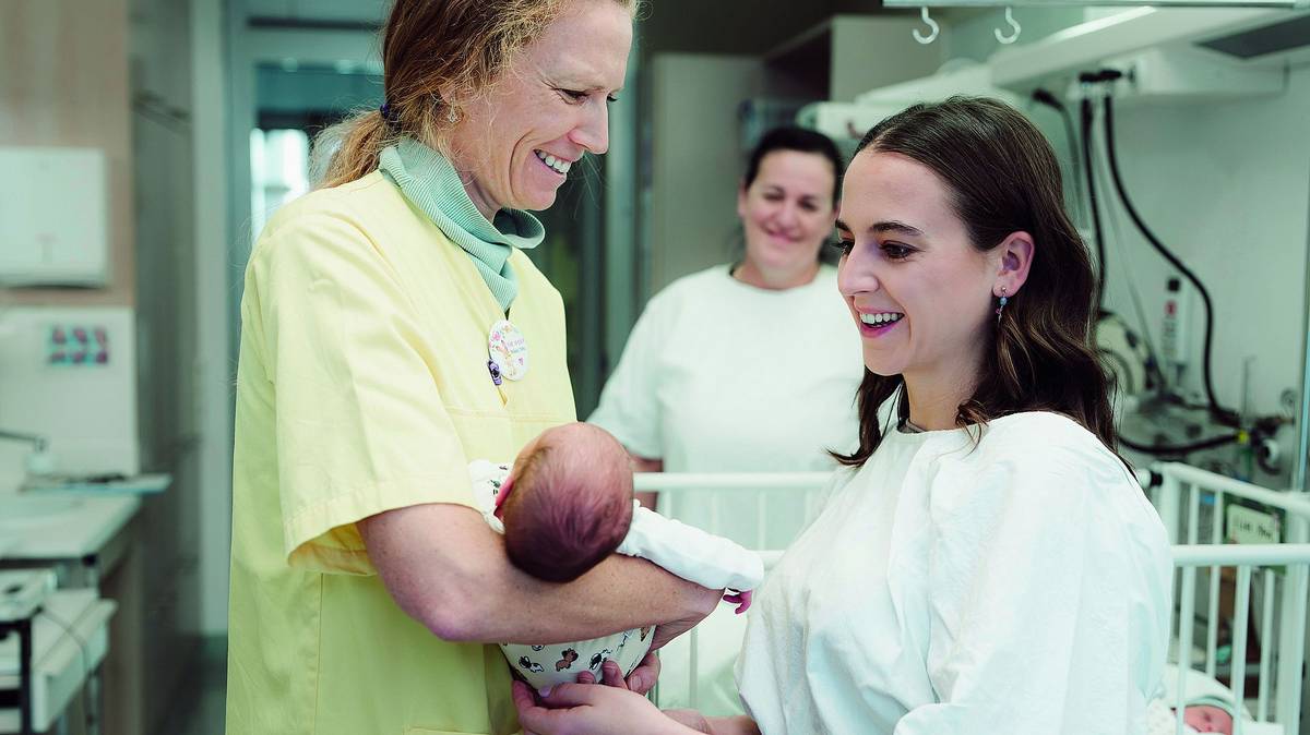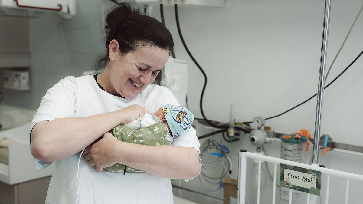 Liebevoll streichelt Anja Großschädl über den Rücken und das Köpfchen des kleinen Milo*, den sie vorsichtig aus seinem Bettchen nimmt. Petra Großschädl nimmt Emil auf den Arm, schaukelt ihn leicht und reicht ihm ihren Finger, den er sogleich fest umschließt. Fast könnte man beim Anblick der beiden Frauen meinen, eine junge Mutter und eine frischgebackene Oma seien hier am Kuscheln mit ihren Zwillingen.