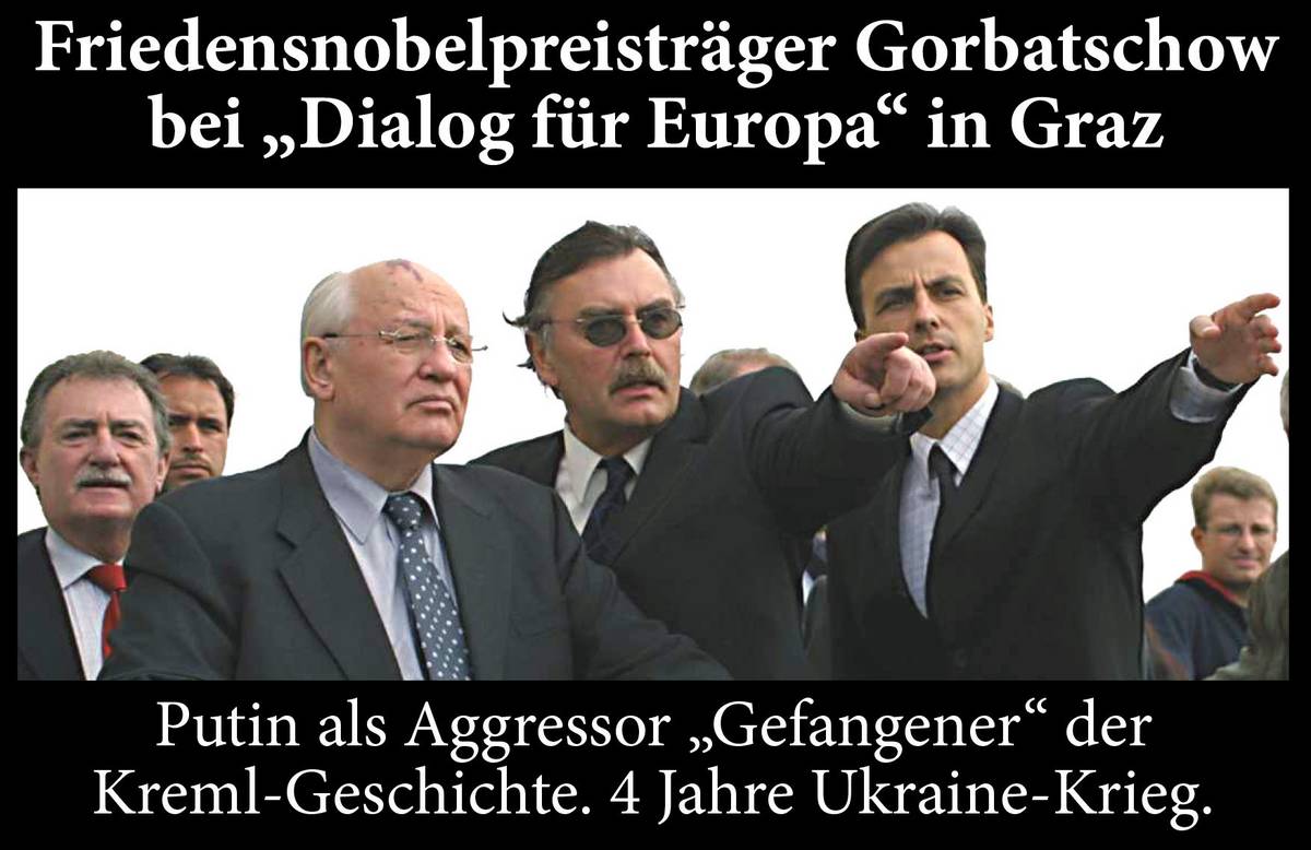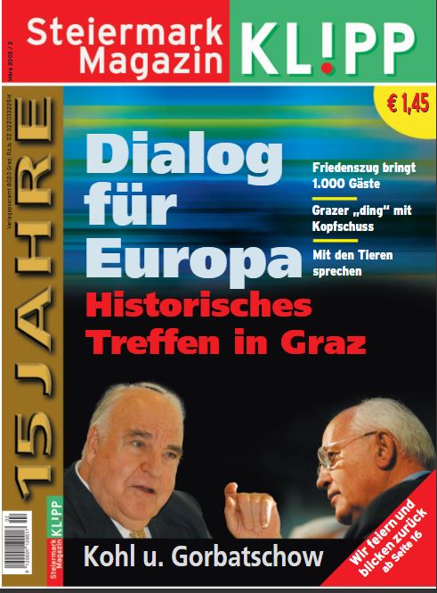 Vom 26. bis 28. März 2003 war Friedensnobelpreisträger und der Ex-Kreml-Chef Michail Gorbatschow (ein Vorgänger von Wladimir Putin) auf Einladung des Landes Steiermark in Graz. Auf Initiative von KLIPP, dem „Dialog für Europa“. Ermöglicht durch den 2019 verstorbenen Landesrat Gerhard Hirschmann und LH Waltraud Klasnic („Gorbatschow und Kohl waren Brückenbauer“) sowie eine Sponsoren-Gruppe (z.B. Energie Steiermark).