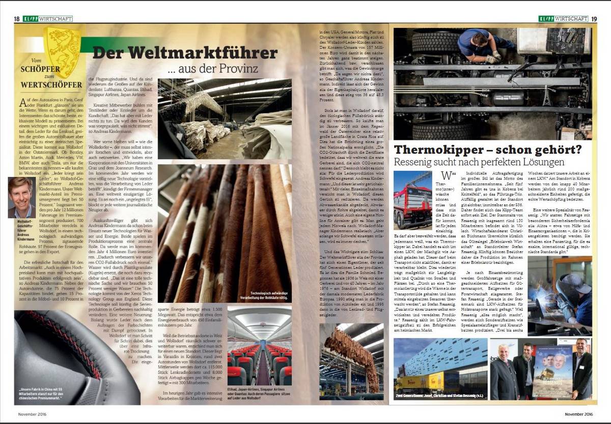 Jahrzehntelang galt Wollsdorf Leder in der Oststeiermark als eines der international erfolgreichen Herzeige-Unternehmen der Steiermark. Auf den Autosalons in Paris, Genf oder Frankfurt zeigten sie ihre besten Produkte, statteten damit die exklusivsten Modelle und Luxuskarossen aus. Die Steirer galten in der Branche als Weltmarktführer. Ob Bentley, Aston Martin, Audi, Mercedes, VW, BMW, aber auch Tesla – alle kauften bis vor kurzem in Wollsdorf ein. „Jeder bekommt sein Leder“, so die Wollsdorf-Geschäftsführung.