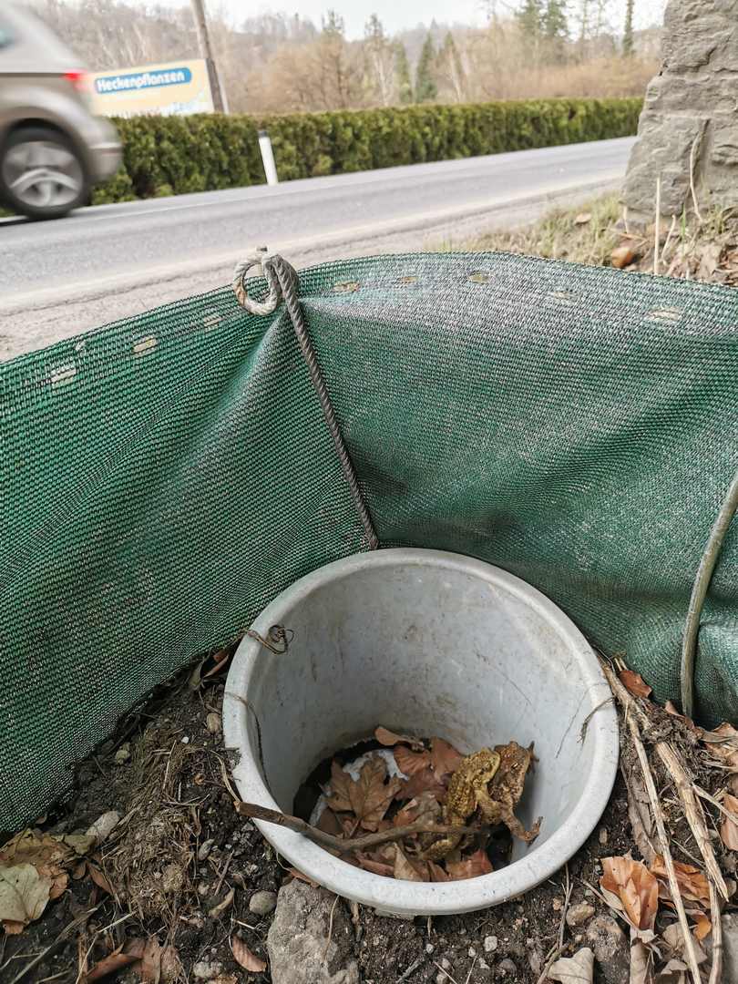 Eine bewährte Akut-Maßnahme, um den Amphibien eine sichere Wanderung zu ermöglichen, ist die sogenannte Zaun-Kübel-Methode. Man kennt ja die grünen Froschzäune, die im Frühjahr die Straßenränder säumen. „Hinter den Zäunen werden alle zehn Meter Kübel in den Boden eingegraben, in die die Frösche bei ihrer Wanderung entlang des Zauns plumpsen“, erklärt Gebhardt im KLIPP-Telefonat.