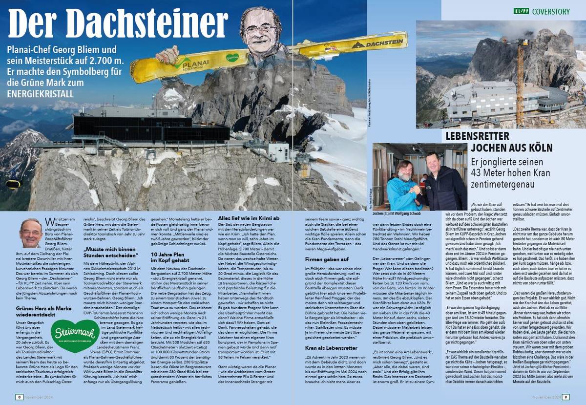 Wir sitzen am Besprechungstisch im Büro von Planai-Geschäftsführer Georg Bliem. Draußen, hinter ihm, auf dem Zielhang der Planai brettern Downhiller mit ihren Mountainbikes die schwierigen, kurvenreichen Passagen hinunter. Das war im Spätsommer 2024, als sich Georg Bliem – der „Dachsteiner“ – für KLIPP Zeit nahm, über sein Lebenswerk zu plaudern.