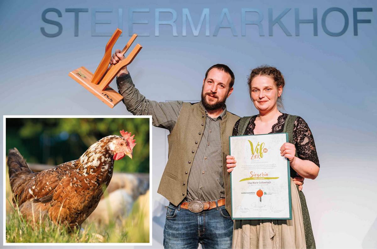 Bei ihnen kann man die Patenschaft für ein Huhn übernehmen. Ein innovatives Modell, das Landwirtschaft, Bildung und Wertschöpfung verbindet – und mit dem sich die Familie Gollowitsch auch den Sieg beim Agrarinnovationspreis der steirischen Landwirtschaftskammer „Vifzack 26“ geholt hat.