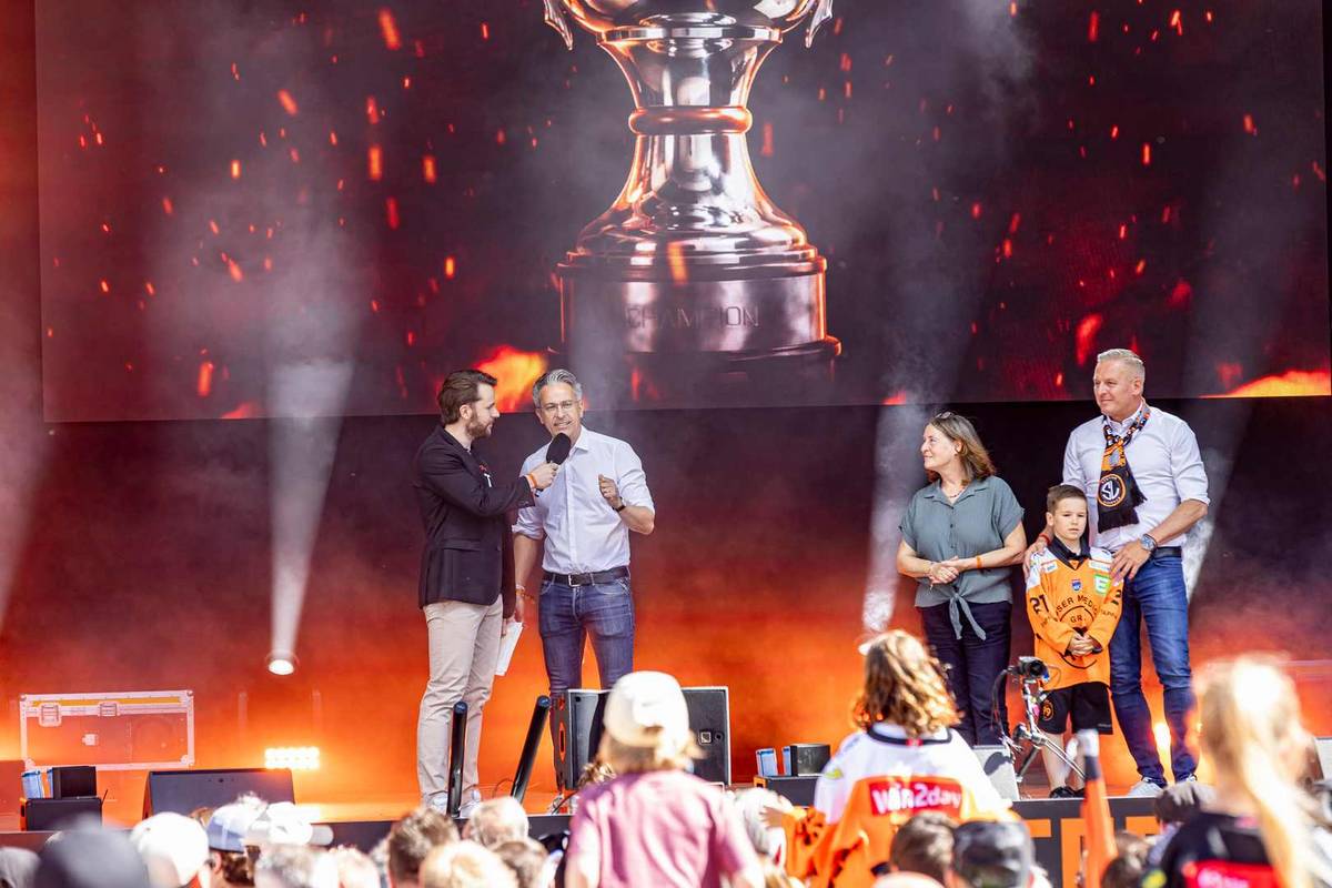 Landeshauptmann Mario Kunasek bedankte sich: „Mit mehr Herzblut kann man das nicht machen. Was dieses Team für den Eishockey-Sport in der Steiermark geleistet hat, ist unglaublich. Auf dass wir den Titel nächstes Jahr verteidigen können.“