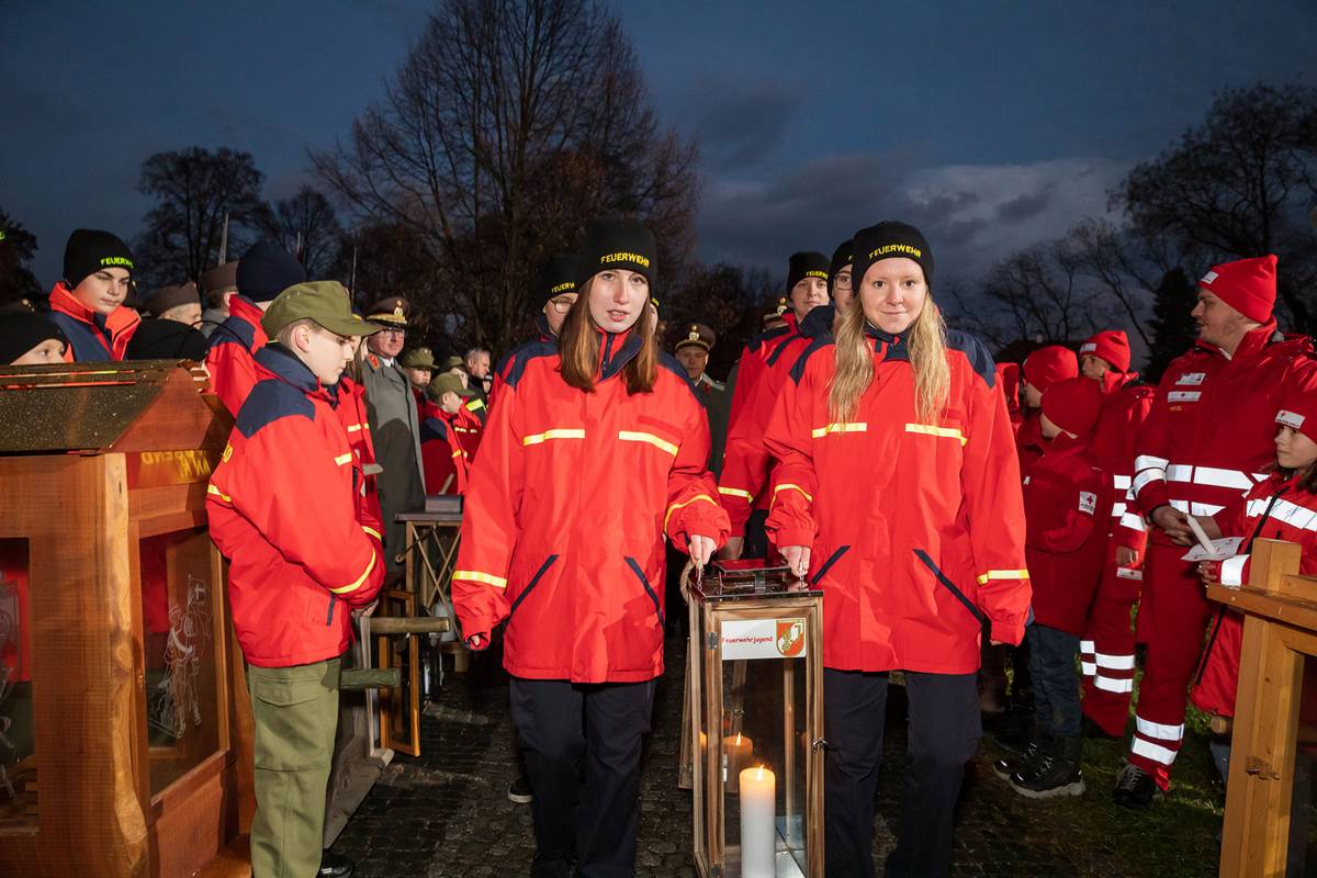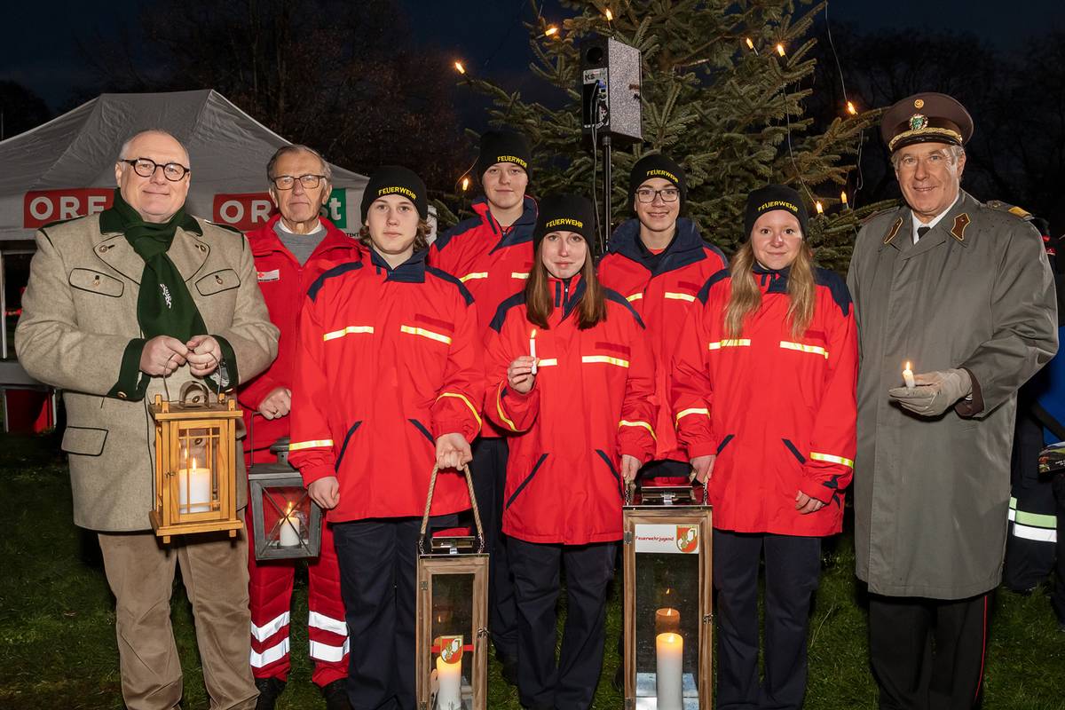 Begleitet wurde die Feuerwehrjugend u. a. vom Landesfeuerwehrverband Steiermark-Jugendbeauftragten BR d.F. Peter Kirchengast sowie von Peter Kracmar, Johann Eder-Schützenhofer und Rudolf Schober vom Bereichsfeuerwehrverband Mürzzuschlag. Auch mehr als 150 Mitglieder der steirischen Rotkreuz-Jugend waren zu Gast − sie übernahmen gemeinsam mit Rotes Kreuz-Steiermark-Vizepräsident Dr. Jürgen Siegert sowie den Rotkreuz-Mitarbeitern Valentin Krause, Patrick Lackner und Johann Windisch das Friedenslicht für die Rotkreuz-Dienststellen. Durch die Veranstaltung führte ORF Steiermark-Moderatorin und „Licht ins Dunkel“-Botschafterin Kathi Wenusch.