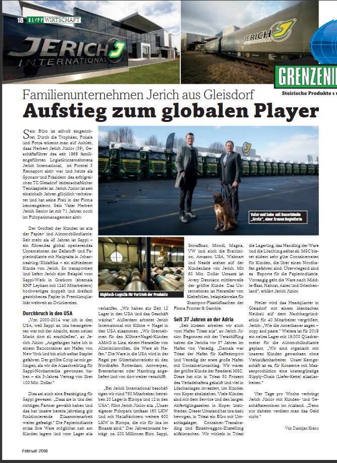 Das Logistikunternehmen mit Sitz in Gleisdorf verdient gut in seiner Branche. Das ist auch nötig, denn nur so kann Herbert Jerich als geschäftsführender Gesellschafter zumindest zwischen drei bis vier Millionen Euro als Werbeaufwand in die 99ers stecken.