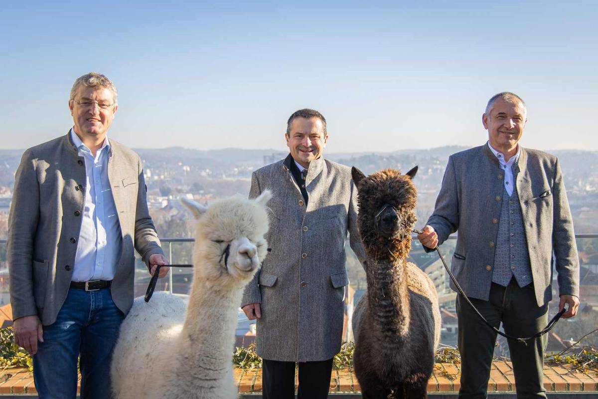 Das Alpakas die Menschen in ihren Bann ziehen, haben auch „Rolex“ und „Arcadian Visible“ heute am Schlossberg bewiesen. Beim „Rundgang“ haben die kuscheligen Tiere, die – ACHTUNG – jedoch nicht gern gestreichelt werden, gleich für Aufmerksam gesorgt. Die Handys wurden gezückt, und Videos und Fotos gemacht. Und so ist auch Bauernbunddirektor Franz Tonner überzeugt davon, dass diese Expo – es ist bereits die Fünfte in Graz – wieder ein voller Erfolg werden wird: „Alpakas sind ruhig, gutmütig, pflegeleicht und anspruchslos und somit eine der besten Alternativen für die extensive Grünlandnutzung. Neben der Zucht eignen sich Alpakas bestens für Wanderungen, aber auch für den therapeutischen Bereich. Ich lade alle sehr herzlich ein, sich diese faszinierenden Tiere anzusehen.“